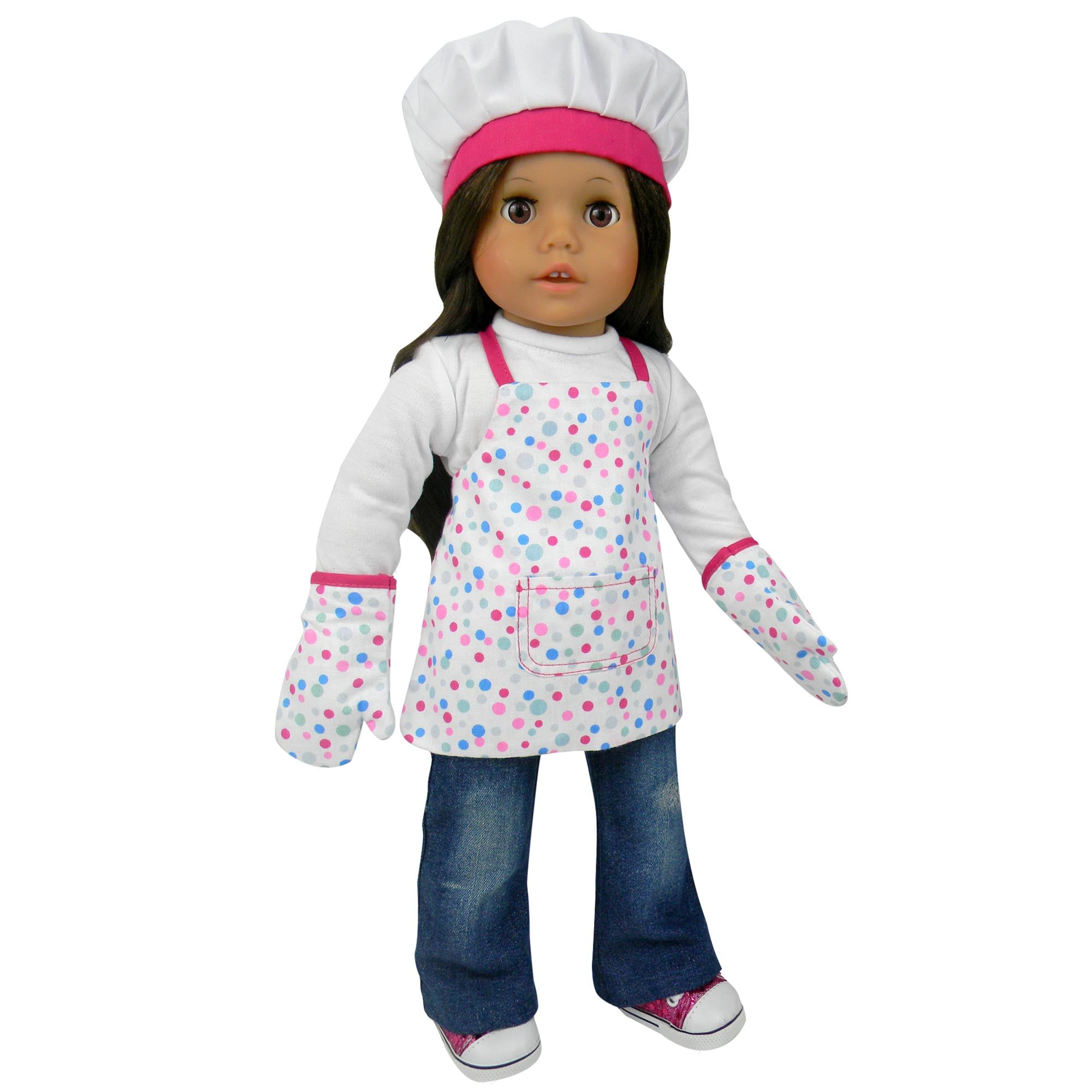 Sophia S Baking Apron White Hat And Oven Mitts Set For 18 Dolls White Walmart Com